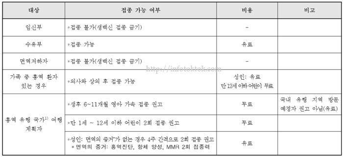 임신부와 면역저하자는 예방 접종이 불가하구요